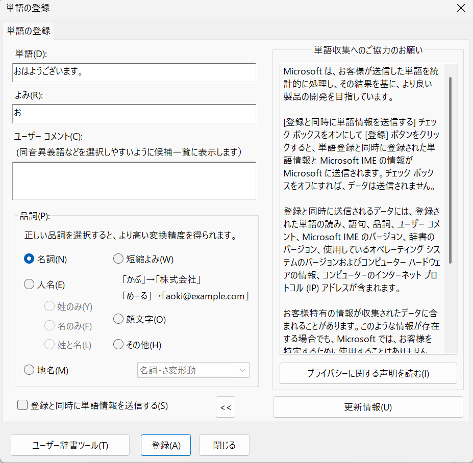 よく使う文言はPCの”単語の追加”機能を利用して登録しておき、入力作業の時間を大幅に減少することができました。